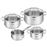 1x Caçarola de 16 cm 1,5L | 1x Tacho de 16 cm 1,5L com tampa vidro | 1x Tacho de 20 cm 2,9L com tampa vidro | 1x Tacho de 24 cm 5L com tampa de vidro