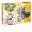 Puzzle em cartão com 27 macro peças, de dupla face, com imagem de uma quinta, numa das faces de dia, e na face oposta, a mesma imagem mas de noite, com pormenores na imagem que brilham no escuro.