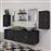 Conjunto de Móveis de Casa de Banho vidaXL 11 Unid. com Bacia e Torneira 150x45x45cm Preto