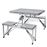 O conjunto integrado de mesa de campismo contem 1 mesa dobrável e 4 assentos. Apresenta uma alça de transporte e um design dobrável, e perfeita para uso na cozinha, no pátio. no jardim, piquenique ou viagens de campismo. E muito leve. A alça de transporte facilita muito o transporte da mesa quando esta num piquenique ou numa viagem de campismo. Graças a estrutura firme, esta mesa de campismo tem uma capacidade ate 30 kg. O conjunto de mesa e os 4 assentos e muito estável e durável. Tem um anel para o suporte de guarda-chuva na mesa principal, desta maneira permite a utilização facial do mesmo mantendo sempre a frescura na sombra.