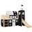 Esta cama alta para crianças, com temática de piratas, será um verdadeiro centro de atenções no quarto do seu filho. A cama alta de madeira possui uma construção sólida e a entrega inclui as ripas do estrado, um escorrega, uma escada, uma tenda com temática de piratas, capas laterais e um toldo. As barras de proteção de ambos os lados da cama manterão o seu pequeno pirata no seu beliche. O espaço por baixo da cama transforma-se no quartel general do capitão com as paredes laterais que incluem janelas. A cama alta possui um...