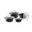 Luxuoso trem de cozinha com revestimento antiaderente de excelente qualidade,adequado a utensílios de cozinha metálicos.,Os alimentos não queimam no revestimento antiaderente com caraterísticas de pedra natural não polida - são cozinhados de forma rápida e uniforme. Tampa sólida de aço inoxidável e vidro com uma abertura para o vapor, pegas de aço inoxidável estanques e fundo de indução. Adequado para todos os tipos de fogões e fornos (até 200 ° C com a tampa). Pode ir à máquina de lavar louça. 5 anos de garantia.