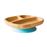Um prato sustentável de bambu, com sistema de sucção, que permite manter o prato na mesa ou na cadeira de alimentação durante a aprendizagem das crianças.