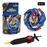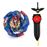 Inclui: 1 pião, 1 adesivo, 1 régua de puxar, 1 lançador.