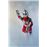 Vem com botas prateadas brilhantes e um body vermelho e prateado com o símbolo do cristal azul no coração.