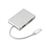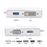 Adaptador Multifunções 4 em 1 para converter de Tipo-c de um portátil para um monitor, televisão ou outro equipamento com entrada HDMI, DVI, VGA ou USB. As portas não podem ser utilizadas simultaneamente.