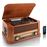 Gira-discos clássico c/ 2 altifalantes, CD / Rádio? Comando à distância? 3 velocidades 33, 45 e 78 RPM? Ligação USB para PC para converter vinyl para digital? Pre-amplificador integrado? Auto return? Comando à distância