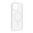 Capa para iPhone 13. Anel magnético compatível com acessórios Magsafe. Design híbrido com costas em policarbonato rígido e contorno reforçado com silicone macio. Punhos antiderrapantes. Design móvel retido. Funcionalidades acessíveis. • Características e Pontos fortes: Capa Magsafe especialmente concebida para o seu iPhone 13. Protecção eficaz contra quedas e arranhões quotidianos. Graças ao círculo magnético, magnetiza-se perfeitamente com acessórios Magsafe: suportes, carregadores, suporte carteira, etc.. Transparente, protege enquanto mantém o design do seu smartphone