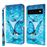 Capa PU Padrão criativo 3D, à prova de choque, magnético com suporte e alça, borboletas azuis Magunivers para Google Pixel 6 Pro