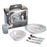 O conjunto de primeira refeição Thermobaby é ideal para alimentar crianças. O conjunto inclui: um prato, uma tigela, um copo, um garfo, uma colher e uma faca redonda. As crianças vão adorar os divertidos e modernos desenhos de animais. Deixe seu filho comer como um adulto. Para simplificar a manutenção, todas as peças do conjunto podem ser lavadas na máquina de lavar louça.