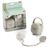 O conjunto de presente inclui: uma chupeta de silicone com formato fisiológico (tamanho 2: para crianças a partir dos 6 meses), uma corrente de chupeta com clipe que evita que a chupeta se perca e um porta chupeta, graças à qual pode ter mais duas chupetas limpas. O porta chupeta pode ser facilmente pendurada na bolsa e estar sempre à mão. A chupeta Thermobaby foi concebida para satisfazer a necessidade natural de sucção da criança, que a acalma onde quer que esteja. Existem orifícios de ar na bainha da chupeta para evitar irritação da pele sensível do bebé durante o contato prolongado com a saliva. Não contém BPA.
