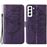 Capa PU padrão de borboleta e flor com suporte e alça Magunivers para Samsung Galaxy S23 5G - roxo escuro