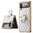 Capa e TPU + PU padrão de losango, galvanoplastia com muleta Magunivers para Samsung Galaxy Z Flip4 5G - branco