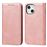 Capa PU textura da panturrilha, fechamento automático magnético, à prova de choque com apoio Magunivers para iPhone 14 - ouro rosa