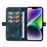 Capa PU YIKATU com suporte e suporte de cartão para iPhone 14 Plus - azul