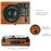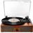 > Este toca-discos com acabamento em madeira tem uma saída RCA na parte traseira para conectar colunas externas, amplificadores ou fones de ouvido.