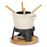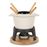 Este elegante conjunto de fondue em ferro fundido tem uma base de madeira natural, sobre a qual é colocada a caixa de álcool. O ferro fundido garante uma distribuição uniforme do calor durante a utilização. O MONT JOLY tem uma capacidade de 1,2 litros. Está equipado com uma tampa anti-respingos, com um suporte para os garfos em madeira de faia. A sua taça amovível em ferro fundido esmaltado pode ser lavada na máquina de lavar louça, o que facilita a sua limpeza. O conjunto de fondue MONT JOLY pode ser utilizado em placas...
