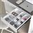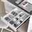 Fornecem-se 10 baldes organizadores para gavetas de casa de banho (4 baldes grandes 100x150mm e 6 baldes pequenos 100x100mm). Estão fabricados em plástico ABS, com um elegante acabamento cinzento antracite ou branco, côres de tendência no desenho de móveis de casa de banho, ideais para combinar com as gavetas da Emuca.