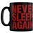 A Pyramid International atreveu-se a entrar no mundo dos sonhos do próprio Freddy Krueger e trouxe de lá uma aterradora caneca de cerâmica de alta qualidade com uma capacidade de 320 ml. Tem escrita a frase ""Never Sleep Again"", um mantra repetido pelas personagens do filme de Wes Craven ""Nightmare on Elm Street"". Para além da frase, na superfície da caneca há uma ilustração do Freddy com a mão em forma de garra levantada e pronto a levar-te com ele para o seu pesadelo particular?
