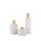 Jarra em cerâmica branca vidrada e à prova de água. Acabamento mate. Com detalhe em madeira de Pinho Nórdico torneado à mão com acabamento em folha de ouro aplicada à mão. Dimensões: D.17,5 x A.12,5cm