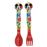 Um conjunto de talheres de plástico reutilizáveis (colher e garfo) com o tema oficial do Disney Mickey Mouse.