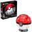Conjunto de construção de Poké Ball com uma circunferência de 12,7 cm, possui uma peça luminosa especial que ilumina a bola com apenas um botão e um suporte para expor.