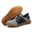 A parte frontal é reforçada com aço, proporcionando uma proteção adicional nos dedos.