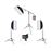 1 girafa com braço articulado 190cm e extensível em altura até 390cm. Peso máximo articulado: 10kg