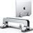 Suporte em liga de alumínio com design vertical para poupar espaço, largura ajustável entre 12-26mm e instalação sem ferramentas. Permite posicionar o seu portátil verticalmente, organiza a sua área de trabalho e protege contra riscos.