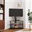 Este suporte de canto combina um suporte de TV com uma mesa de três prateleiras no mesmo produto, oferecendo uma solução prática para montar a sua TV e adicionar espaço de arrumação adicional à sua divisão. Função giratória: pode girar este suporte de TV 25° para a esquerda e para a direita para obter um melhor ângulo de visão.Amplo espaço de arrumação: o móvel para dispositivos multimédia foi concebido com prateleiras, oferecendo um amplo espaço para colocar DVDs, dispositivos multimédia e outros artigos decorativos dentro do limite da capacidade de carga.Economiza espaço: este suporte de chão para TV possui um design compacto e não ocupa muito espaço, pelo que o pode colocar no canto de salas de estar, quartos e escritórios pequenos. Além disso, possui um sistema de gestão de cabos para poupar espaço e arrumar fios desorganizados na parte de trás do móvel de TV.Compatibilidade VESA: este móvel de TV é compatível com tamanhos VESA que variam de 100 x 100 mm a 600 x 400 mm, tais como: 600x400/400x400/400x300/400x200/200x400/300x300/300x200/200x200/200x100/100x200/100x100 mm. Útil saber:Certifique-se de que a sua TV possui quatro orifícios de montagem roscados na parte de trás do ecrã. Recomendamos que meça os espaçamentos dos orifícios VESA da sua TV antes de comprar, para garantir a compatibilidade.Certifique-se de que a largura da sua TV cabe no suporte de TV e que a altura do suporte de TV ao tampo da mesa de vidro também consegue acomodar a sua TV.Fornecemos vários parafusos e espaçadores para adaptar à sua TV, mas podem não funcionar para todas as marcas. Poderá precisar de usar os parafusos originais que vieram com a sua TV ou comprar parafusos especiais.Atenção:Para evitar que o produto se vire, deve utilizar o dispositivo de fixação na parede fornecido.