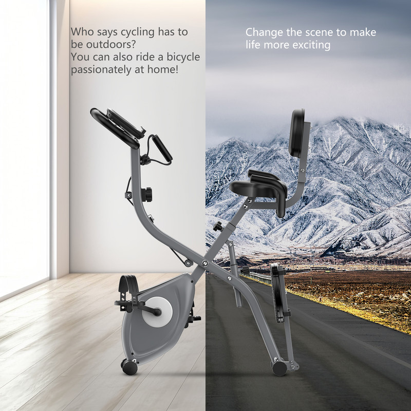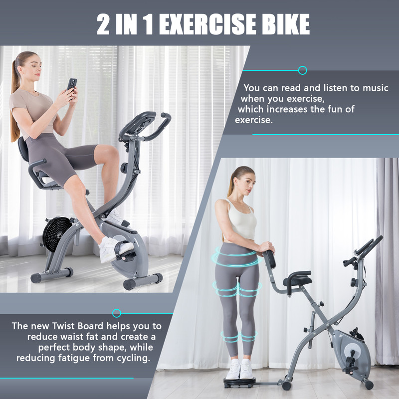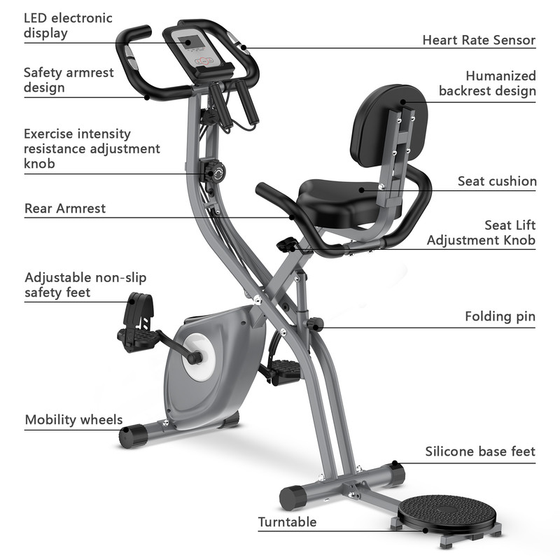 As nossas bicicletas de exercício dobráveis têm 3 modos: modo de ciclismo, modo de torção e modo de cabo de guerra, que podem ser facilmente convertidos da vertical para a horizontal através de uma alavanca. Além disso, os discos de exercício são adicionados à parte de trás desta bicicleta de exercício para criar o treino perfeito para o utilizador.