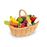 Brinque de lojista com uma linda cesta de imitação de vime (em plástico) cheia de 24 frutas e vegetais (12 variedades). Inclui: 2 limões (diâmetro 32x46mm), 2 laranjas (diâmetro 36x33mm), 2 maçãs (diâmetro 32x43mm), 2 bananas (80x22x24mm), 2 morangos (diâmetro 33x50mm).mm), 2 pares de cerejas (diâmetro 24mm par cereja), 2 cogumelos (diâmetro 31x40mm), 2 cenouras (120xdiâmetro 21x30mm), 2 rabanetes (diâmetro 34x63mm), 2 tomates (diâmetro 40x41mm), 2 alhos-porros (diâmetro 21x94mm), 2 batatas (diâmetro 28x45mm).