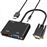 Adaptador VGA macho para HDMI e VGA fêmea. Saída dupla para transmissão simultânea. Qualidade de imagem HD e experiência de som envolvente através Jack 3,5mm. Alimentação fácil através da porta de carregamento Micro USB. Design elegante e compacto. • Características e Pontos fortes: Adaptador de vídeo versátil para converter a porta VGA em duas saídas separadas: HDMI + VGA. Compatibilidade máxima para ligar o seu computador / PC VGA a ecrãs / monitores HDMI modernos e VGA mais antigos. Saída dupla, transmissão simultânea para dois ecrãs para apresentações dinâmicas. Qualidade de imagem nítida e clara graças à conversão de alta definição até 2K