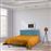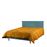 - Sommier e cabeceira estofados com tecido em cor Turquesa; - Pés em faia.