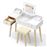O conjunto inclui: Mesa de maquilhagemx1, Cadeirax1, Caixa de arrumação