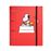 Fabricadas com uma capa dura de cartão com 2 mm de espessura e forradas com papel de 150 g laminado a mate. Têm um tamanho de 32 x 27,5 cm, encadernação com 4 argolas, fecho com elástico de 9 mm e design interior personalizado.