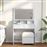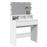 O toucador é um ótimo complemento para a decoração do seu quarto, enquanto mantém os seus produtos de cosmética ao alcance. Material estável e durável: os derivados de madeira são um material durável e estável com uma superfície lisa que é resistente à humidade, deformação e rachadelas, tornando-se uma escolha fiável para uma variedade de projetos.Amplo espaço de arrumação: o móvel de maquilhagem com 2 gavetas e 3 compartimentos proporciona um amplo espaço de arrumação para manter os seus vários artigos essenciais do dia-a-dia bem organizados e fáceis de alcançar.Espelho útil: um bonito espelho proporciona uma vista clara para a aplicação de maquilhagem e contribui com um toque elegante para o toucador.Luzes LED: o toucador possui lâmpadas LED com USB, que são fáceis de alternar entre os modos de quente e branco frio. As lâmpadas LED à volta do espelho iluminam também a sua beleza. Atenção:Para evitar que tombe, este produto deve ser utilizado com o dispositivo de fixação na parede fornecido.