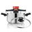 Panela de pressão em inox | Equipada com 3 sistemas de segurança: válvula giratória, válvula de segurança e braço metálico | Tampa extra em vidro | Maçaneta de abertura no topo | Tampa e corpo em aço inoxidável de alta qualidade | Indicado para uso em gás, anel radiante, placa elétrica, vitrocerâmica e indução | Peças laváveis na máquina de lavar loiça | Capacidade: 6 litros