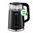 Quando a chaleira elétrica é colocada na base conectada, o exterior preto sólido se torna um painel de controle fácil de ler com botões iluminados e tela digital de temperatura. A tela de temperatura indica a temperatura precisa da água, o que é útil ao assar e precisar de água em uma certa temperatura.
