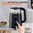 A chaleira de água é lindamente elaborada com vidro de borosilicato de grau alimentício, camada externa de PP e placa de aquecimento de aço inoxidável 304. Saudável e seguro para você e sua família. Sentado em uma base de 360 graus, a chaleira pode ser usada confortavelmente tanto por destros quanto por canhotos. Isso também torna a chaleira facilmente portátil para despejar e servir longe da cozinha onde a água quente é necessária.