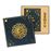Caixa de oferta com 26,5 x 26,5 x 2,5 cm, contendo uma caneta e um caderno A5 de capa dura, laminado mate, de toque suave, com pormenores dourados, cantos arredondados, encadernação cosida, rebordo dourado e interior em forma de bala. Inclui 96 folhas (192 páginas) de 100 g/m2.