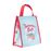 Saco de almoço em 100% poliéster e forro interior em alumínio. Mede aproximadamente 20 x 13 x 23 cm. Tem um bolso lateral incorporado, pegas e fecho de correr. Pesa 180gr.