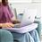 Suporte para computador portátil. Tem um tampo de mesa de 34 x 44 cm e um fundo almofadado para o manter confortavelmente sentado. Inclui uma ranhura para segurar um telemóvel ou um tablet.