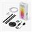 Candeeiro de pé com 1.4m de altura, em alumínio revestido a cor preta. Tem 72 leds, 1700 lumens, 16M+ cores, 22W, é controlável por Bluetooth, WiFi e Matter WiFi, ou controlador incorporado com 5 botões (on/off, cor, rhythm scene, brilho +/-), é compatível iOS/Android. Requer ligação à corrente.