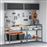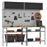 O que inclui: 2x mesa (100 cm), 4x painel de ferramentas (80 cm), 2x armário com porta a gás (100 cm), suportes e ganchos