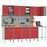 Conjunto de Armário de Trabalho e Painel de Ferramentas vidaXL | 12 Peças | Vermelho, MDF e Metal