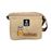 Em tecido sintético, e interior com película isotérmica, para ajudar a manter a sua refeição sem variação de temperatura.