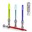 CORES: A cor da tinta de cada caneta corresponde à cor do sabre de luz: Vermelho, Azul, Verde e Roxo.