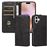 Capa FOXDOCK para iPhone 16 Plus | Fecho Magnético | Compartimentos para Cartões e Suporte | Pele PU | À Prova de Choque | Preto