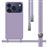 Capa protetora com cordão de silicone líquido na cor roxa para iPhone 17 Pro Max (6.9). Esta capa tem um bom equilíbrio e é composta por duas camadas: uma interna que proporciona rigidez e uma externa que lhe confere um acabamento macio e sedoso.